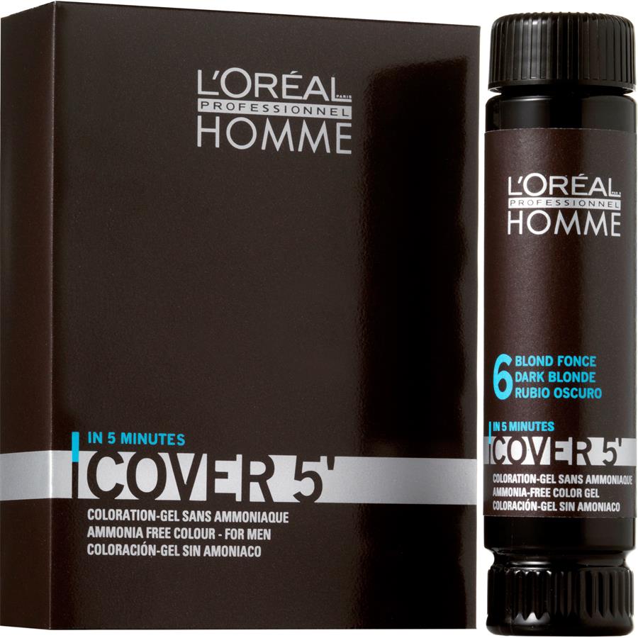 Χρωμοσαμπουάν χωρίς αμμωνία που μειώνει την αντίθεση των γκρίζων μαλλιών (Νο 6 Ξανθό σκούρο). Η υπηρεσία L’Oreal Professionel Cover 5′ απευθύνεται σε άντρες που επιθυμούν να μειώσουν την αντίθεση των λευκών μαλλιών με φυσικό και διακριτικό τρόπο, χωρίς να προβούν σε ριζικές αλλαγές, και να ανανεωθούν.